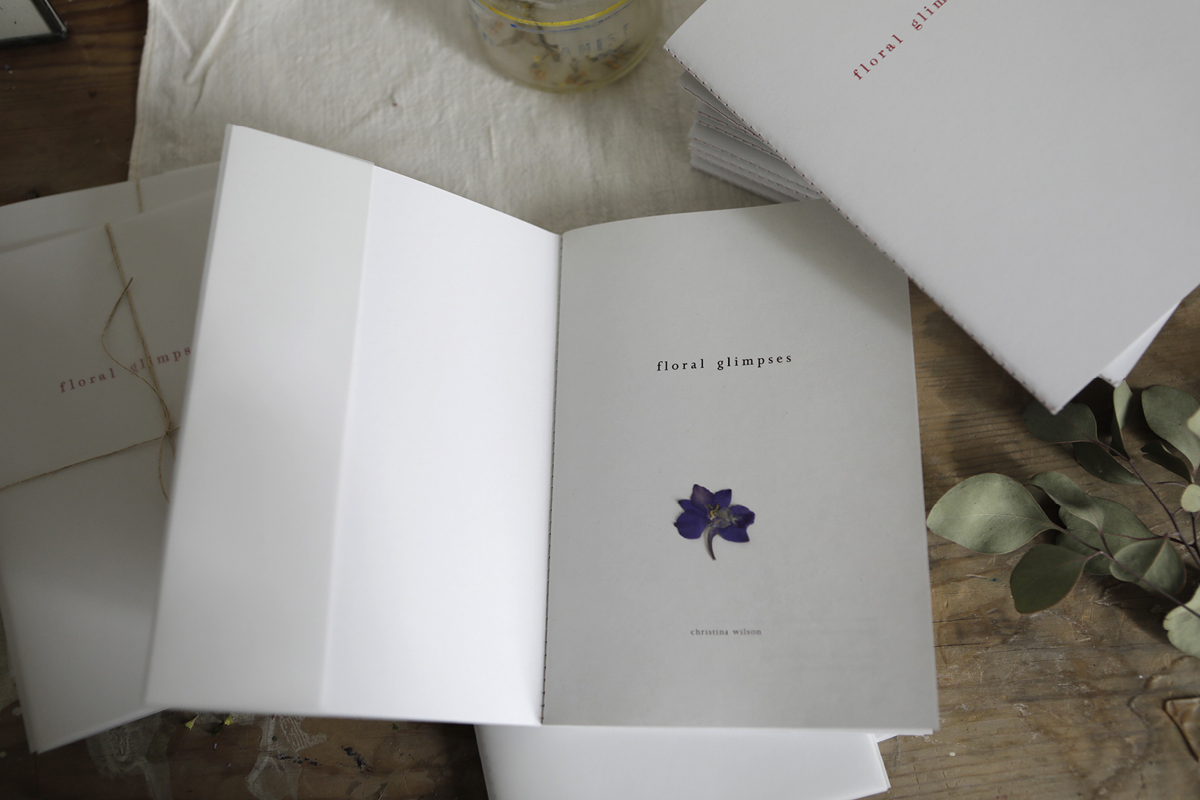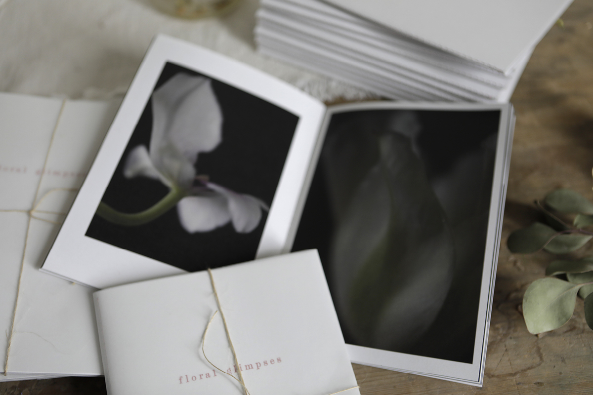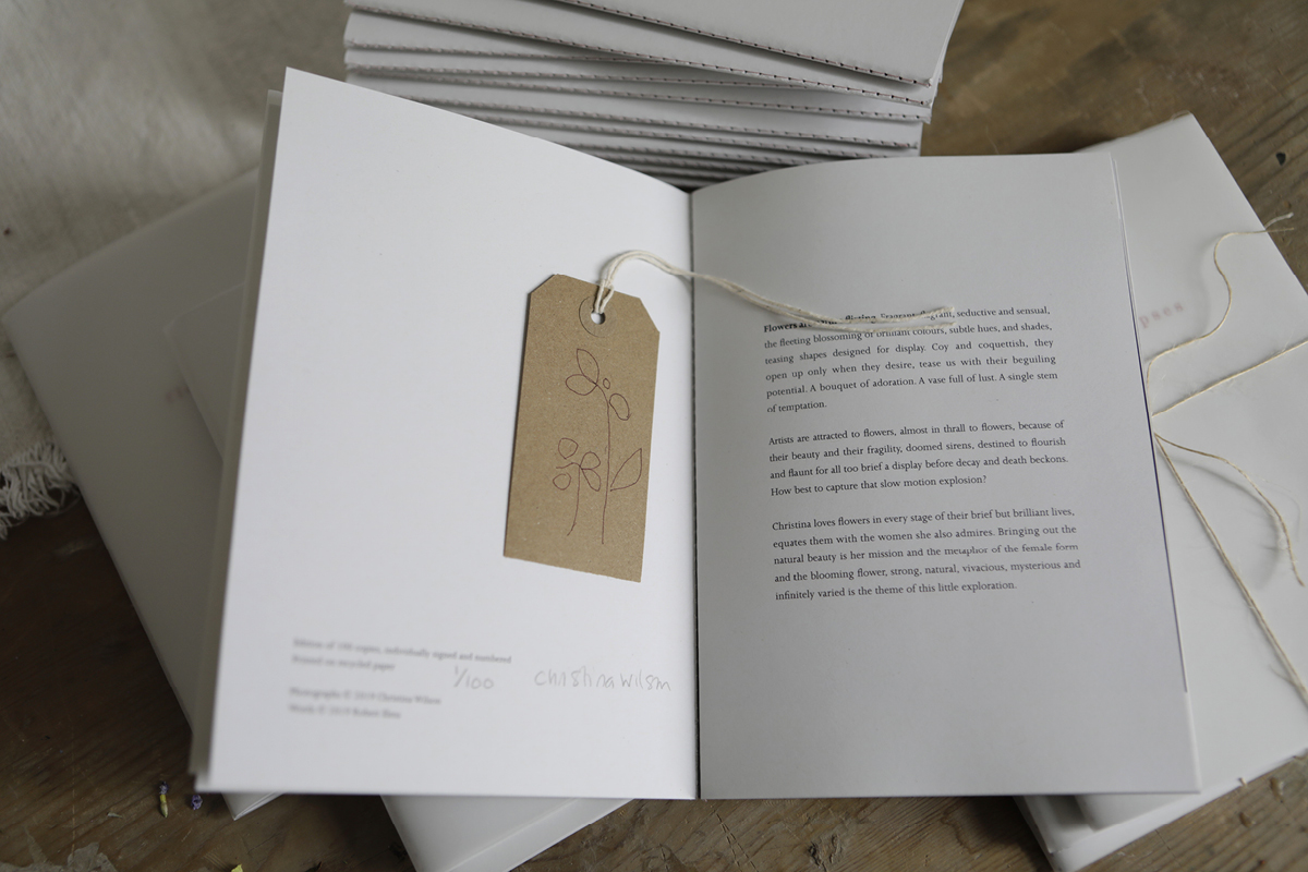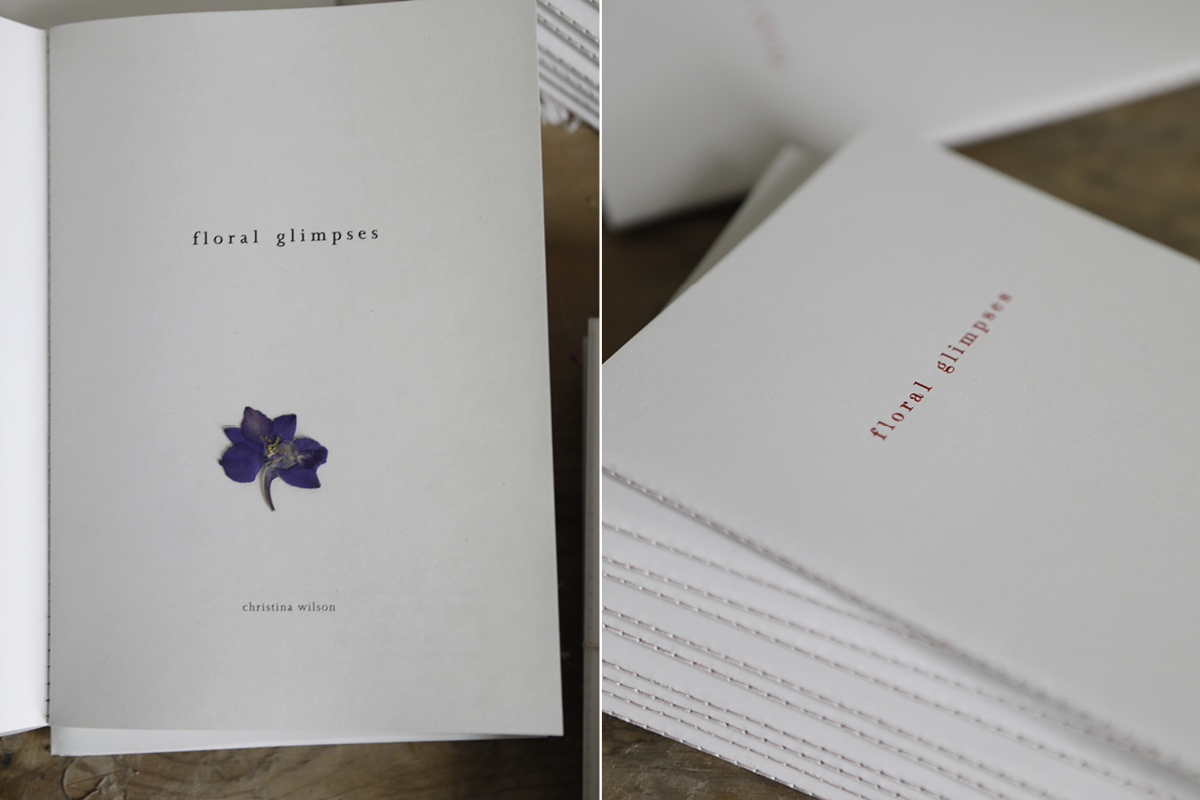 Christina has produced a follow up to Stolen Glimpses. This time her eye settles on flowers and femininity. Floral glimpses is a small, gift sized and gift priced, but still exquisitely produced book. A sumptuous essay on the beauty of nature at its most alluring, this craft produced, machine sewn 40 page book, printed on reclaimed paper is a tiny delight.